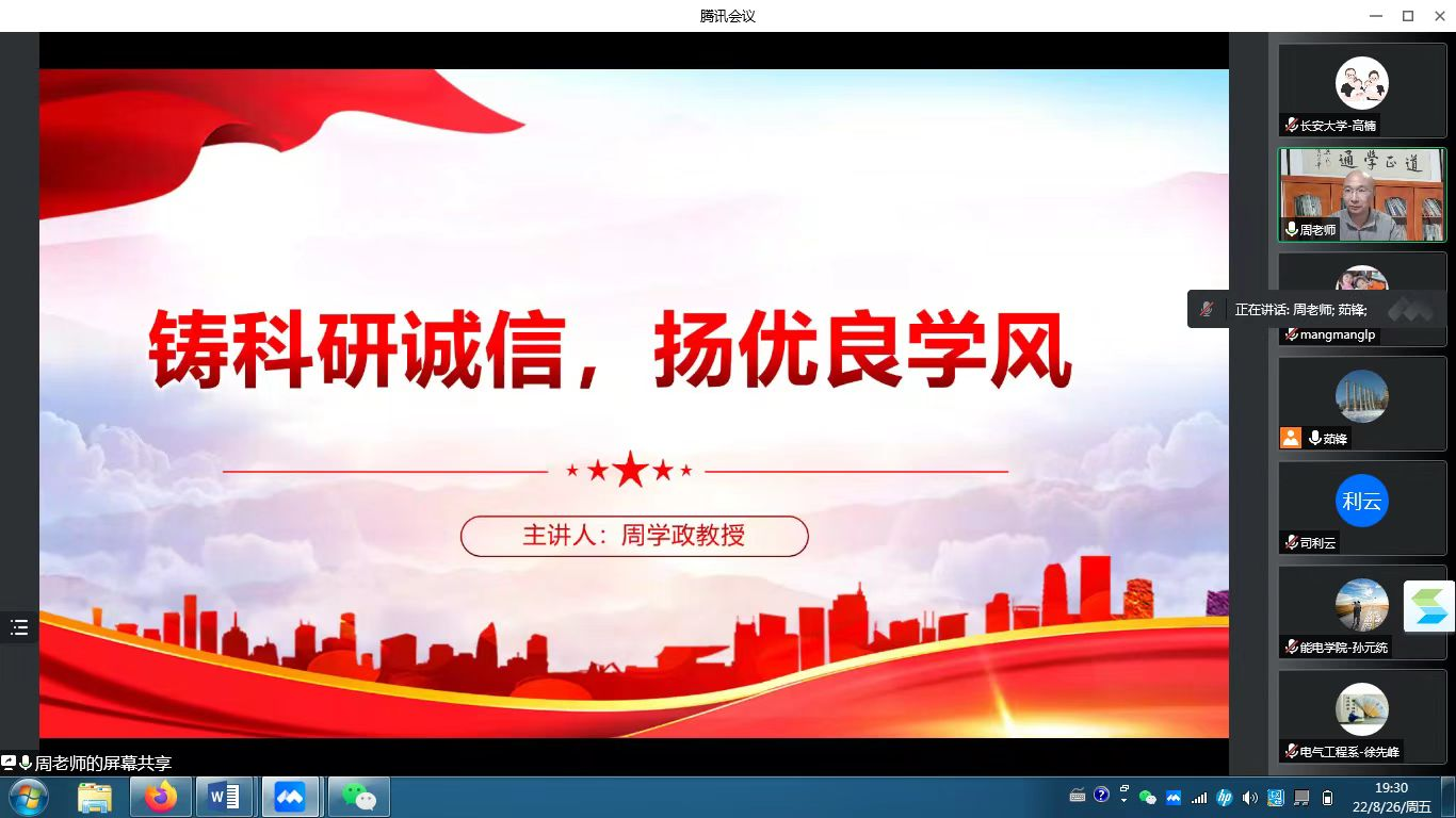 2022年8月26日,学院邀请了北京体育大学的周学政教授作了线上专题报告,学院教师和研究生参加了此次学习。周学政教授以《铸科研诚信,扬优良学风》为题,首先从科学社会学的角度讲述了从学院科学到后学院科学再到新时代,科研工作发生的变化。其次,他从什么是科研诚信、科研不端的表现形式、科研诚信的法律和制度规范、科研不端典型案例等方面系统分析了当前科学研究中存在的学术道德与科研不端问题,讲述了科研诚信是科学研究的基石。最后,他强调科研诚信是科研人员的生命,是科研事业的源泉。并积极倡导广大科研人员坚守科研诚信的底线,大力弘扬优良学风。