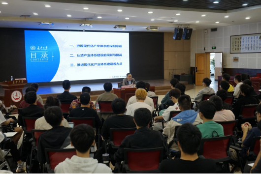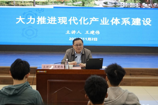 本堂思政课题为《大力推进现代化产业体系建设》,王建伟副校长立足当前全球新一轮科技革命和产业变革深入发展的背景,从我国现代化产业体系面临的复杂局面出发,围绕现代化产业体系的深刻意蕴、认清产业体系建设的现状与挑战、推进现代化产业体系建设着力点三方面的内容,结合实例与自身经历为同学们进行了深入浅出的讲解,向同学们深刻阐述了大力推进现代化产业体系建设的重要性,希望同学们在校期间也能树立远大理想,学会分析研判产业、行业的发展形势,将来为中国现代化汽车产业及能电产业的建设发展做出应有的贡献。