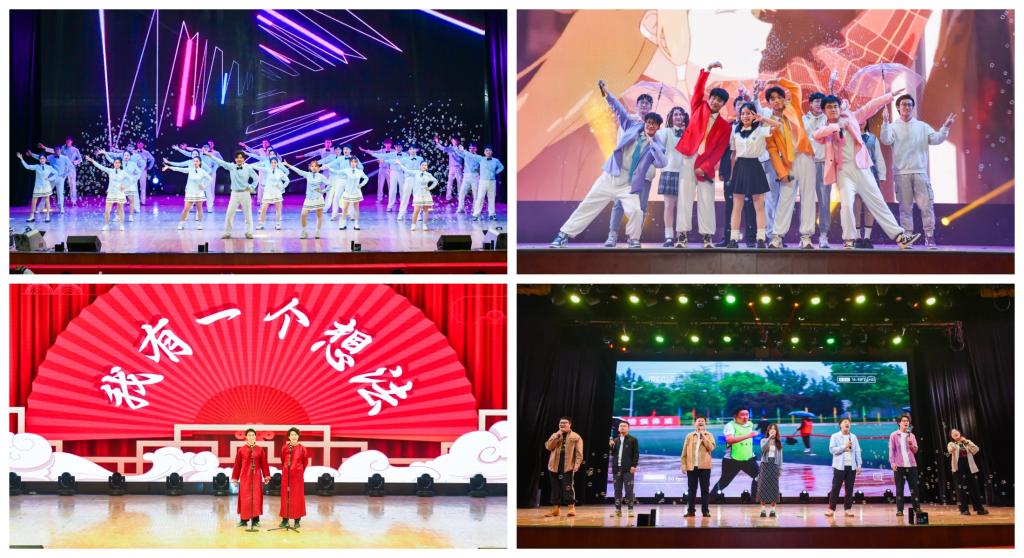 晚会表演在舞蹈《向快乐出发》中拉开帷幕。歌曲串烧《我们的明天》《逆战》《倔强》《阳光宅男》点燃全场气氛。相声《我有一个想法》幽默有趣引得现场爆笑不断。乐队表演《那时的明天》演绎老歌展现经典魅力。街舞《Black mamba》在灯光闪烁下,炫舞炸场。乐器合奏《以爱之名》悠扬的曲调唤起青春的记忆。古典舞《寻茶》,舞姿优美,技艺精湛。歌曲《起风了》传递着希望与坚持的力量。民族舞《“疆”舞飞扬》展示出独特魅力,诉说着民族团结。来华留学生代表热情地分享在校经历,展示中华传统文化学习成果,为中国、为长大、为能电点赞。辅导员节目《想把我唱给你听》点燃全场的热情。师生朗诵《青春之歌》展现昂扬风貌,抒发青春意气,催人砥砺奋斗。师生合唱《强国一代有我在》,唱出强国有我的使命担当,为晚会画上圆满句号。整体节目主题鲜明、表现形式多样、演员活力四射,精彩纷呈、气氛热烈,把晚会不断推向高潮。
