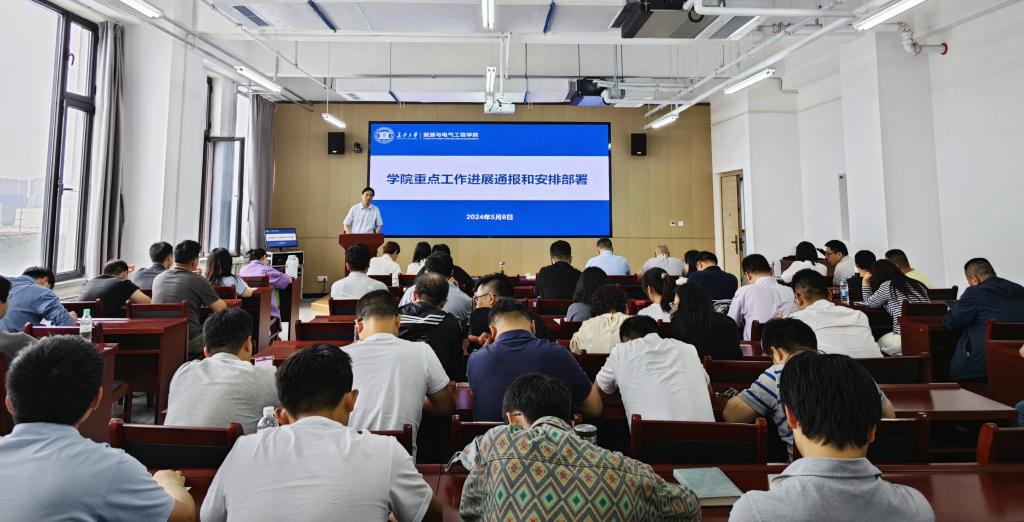 院长陈昊对学院2024年的重点工作进展情况进行通报并对下一步工作做出部署。他指出2024年是学院全面推进高质量发展行动计划的关键之年,学院首先要坚持党的全面领导,以高质量党建引领高质量发展,其次要树牢人才培养中心地位,提升人才培养质量,重点是要加强学科建设与有组织科研,最终落实“人才强院”战略,坚决守好安全底线。