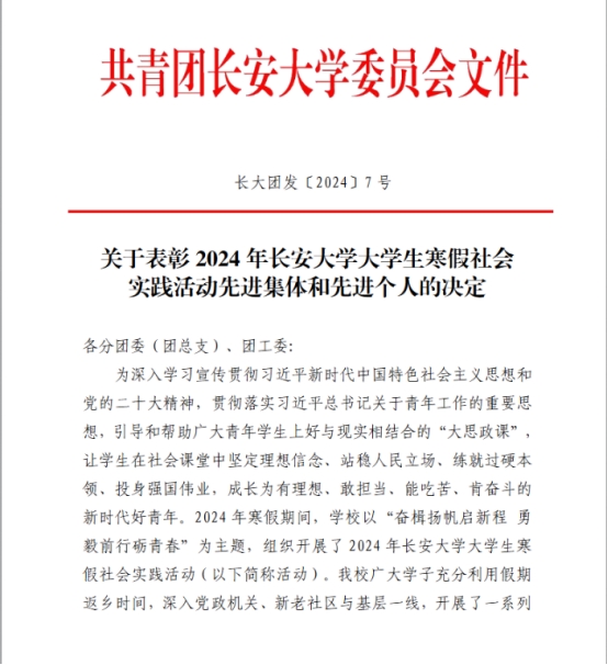 此外,学院24名学生荣获2024年寒假社会实践先进个人,9名学生在学校2024年寒假社会实践“优秀学子回母校”专项中荣获先进个人。