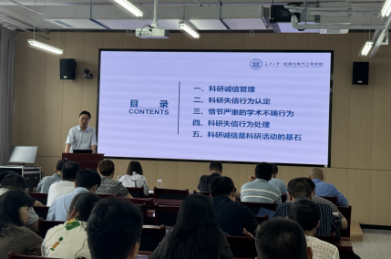 为进一步加强科研诚信和学术道德规范建设,杜绝科研和学术不端行为,2024年7月16日,学院召开“加强学术诚信教育、营造良好科研环境”专题会议,会议由学院院长陈昊主讲,全体教职员工参加。
