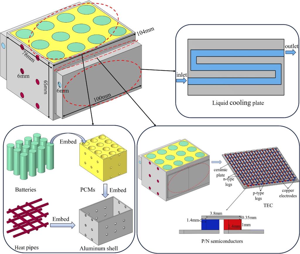 PCM-HP-TEC混合BTMS的几何结构示意图