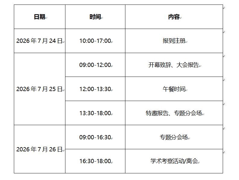 会议时间:2026年7月24-26日