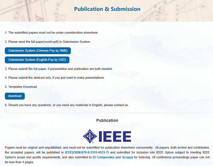 所有的投稿论文都必须经过2-3位专家审稿,经过严格的审稿之后,最终所有录用的论文将由IEEE(ISBN: 979-8-3315-4572-7)出版,见刊后由出版社提交至IEEE Xplore, EI, Scopus检索。