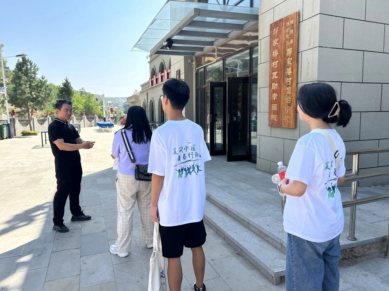 接着,实践队员前往“郝家桥村互助幸福院”,张家砭镇副镇长王应伟与队员讲述了当年习近平总书记在幸福院门口与村民亲切交流的难忘记忆,以及如今郝家桥村的建设发展情况。远处的山坡上, “绿水青山就是金山银山”的字牌赫然醒目。