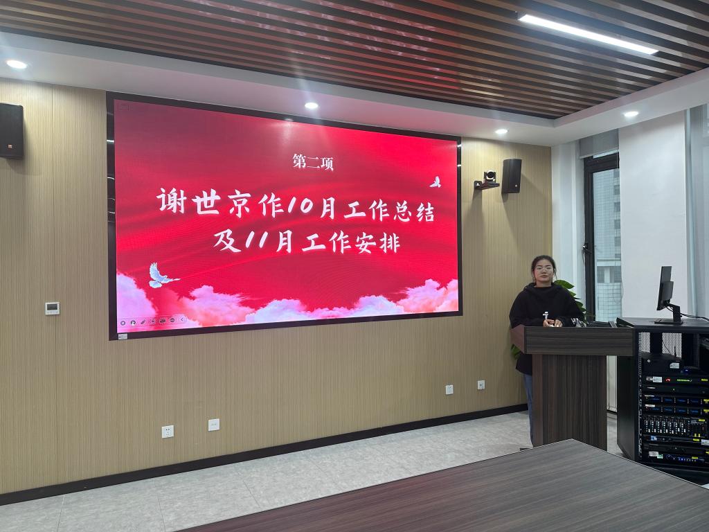 会议伊始谢世京首先对10月份的工作进行了全面的回顾与总结。她高度评价了研会全体成员在过去一个月中的卓越表现,指出各部门之间紧密协作,共同努力,在全校研会月报评比中荣获了第三名的好成绩,这一成就充分展现了团队的凝聚力和执行力。随后,谢世京对11月的工作计划进行了详尽的安排,为接下来的工作指明了方向。