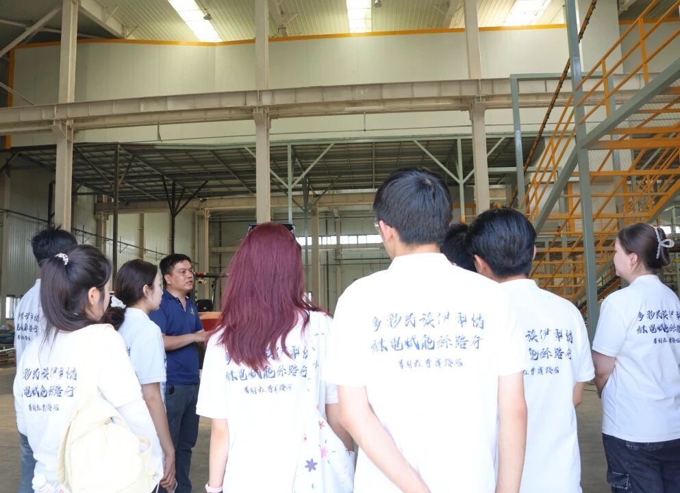 带着对边疆地区产业发展的浓厚兴趣,下午实践队走访了“中金新能源科技有限公司”。在企业相关负责人的带领下,队员们参观了企业的展示中心、喷涂、整装车间等,详细了解了企业在新能源摩托车技术研发(如光伏、太阳能)、清洁能源应用以及推动当地绿色低碳发展方面所做的努力与取得的成就。