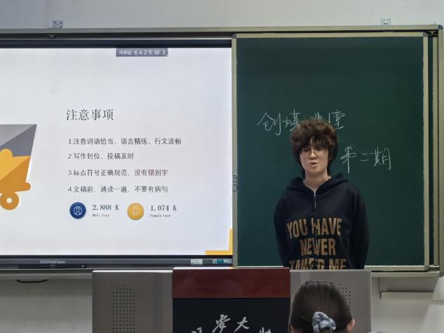 那梓芮首先从新闻写作相关概念切入,讲明新闻的定义与新闻的本质,并明确新闻具有时效性、重要性、接近性、显著性等属性,并详细拆解了新闻“5W”要素。写作教学环节,她聚焦新闻稿标题、导语、主体三大模块,逐项讲解实用写法。并结合多则真实案例分析,直观呈现写作要领,内容生动易懂。最后,那梓芮对以上内容进行梳理总结,现场氛围良好。