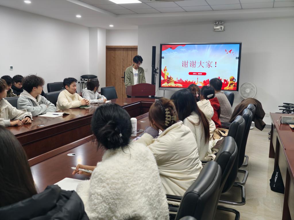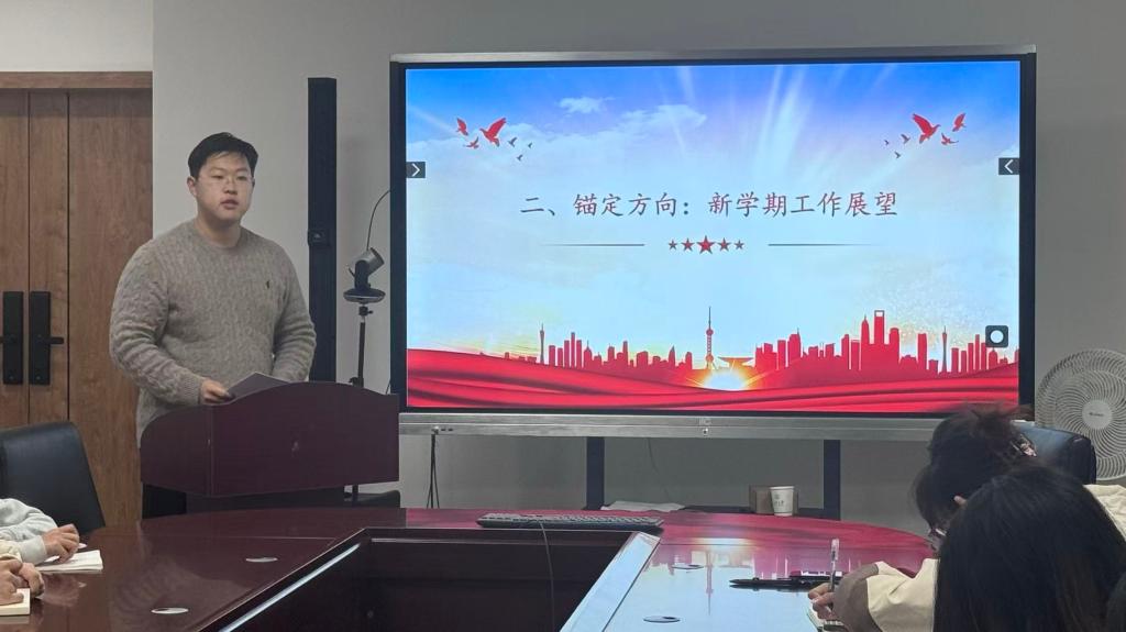 随后,m88APP官网学生会执行主席李贺岩结合学生组织实际,系统梳理两会精神对青年成长的指导意义,强调要将国家战略部署与学生组织工作相结合,明确新学期学生会工作的方向与重点,在学思践悟中锚定前行方向。