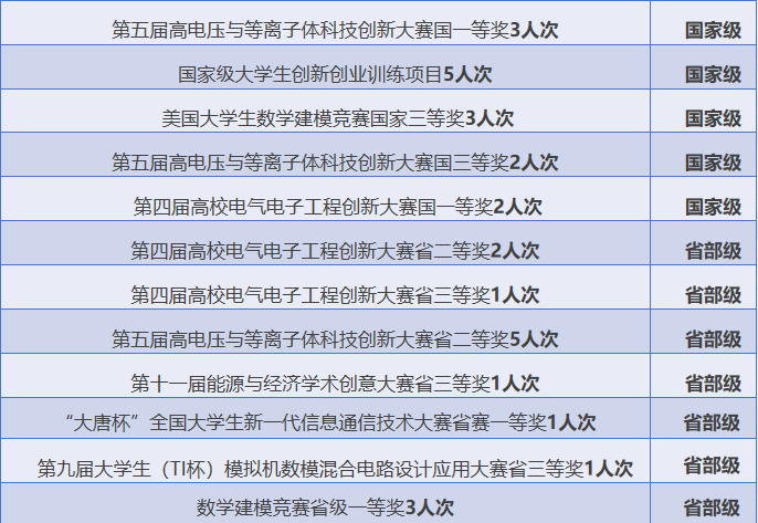 科创赛场上,以“拓荒者”勇气屡创佳绩,在高电压与等离子体科技创新大赛等赛事中,累计获得国家级奖项10项、省部级16项、校级76项,共102项成果彰显创新实力。目前,班级8人推免至m88APP官网、华南理工大学、西北工业大学等高校,推免率40%,位居学院第一。