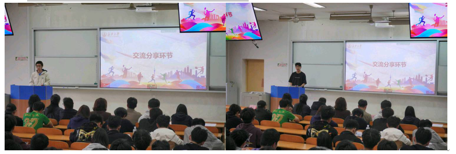 文体协会主席李钰淇作为学生代表发言,表明运动员将全力以赴备战赛事并代表全体参赛成员承诺将遵守赛事纪律、认真备赛;项目负责人代表凌人钊从赛程安排、竞赛优先原则及合理训练方法层面分享经验;优秀运动员秦榕浩分享备战感悟与省大运会备赛过程,为运动员拓宽训练思路。