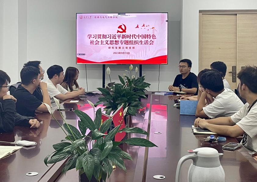 为深入贯彻习近平新时代中国特色社会主义思想,落实主题教育学习要求,持续巩固深化主题教育成果,把习近平新时代中国特色社会主义思想转化为坚定理想、锤炼党性的强大动力,激发出党员同志投身建设社会主义现代化强国的坚定信念。2023年9月13日晚,m88APP官网研究生第三党支部在学院楼608党团活动室开展“学习贯彻习近平新时代中国特色社会主义思想主题教育”专题组织生活会,会议由研究生第三党支部书记彭阳老师主持,支部全体党员参加。